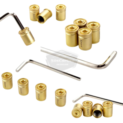 Kilitlemeli Sibop Kapağı Alyanlı Sibop Kapağı Araba Motosiklet Bisiklet Metal Sıkmalı Gold Altın 4 lü Set