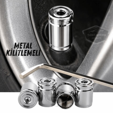 Kilitlemeli Sibop Kapağı Alyanlı Sibop Kapağı Araba Motosiklet Bisiklet Metal Sıkmalı Silver Gümüş 4 lü Set