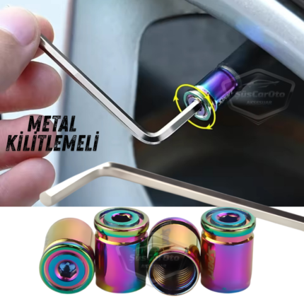 Kilitlemeli Sibop Kapağı Alyanlı Sibop Kapağı Araba Motosiklet Bisiklet Metal Sıkmalı Renkli Bukalemun 4 lü Set