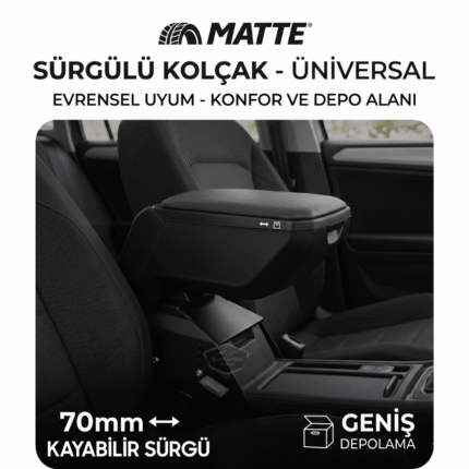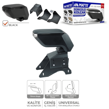 Üniversal Her Araca Uygun Lüx Sürgülü Kol Dayama Kolçağı Kızaklı Yüksek Kalite Oto Araç Kolçak Siyah