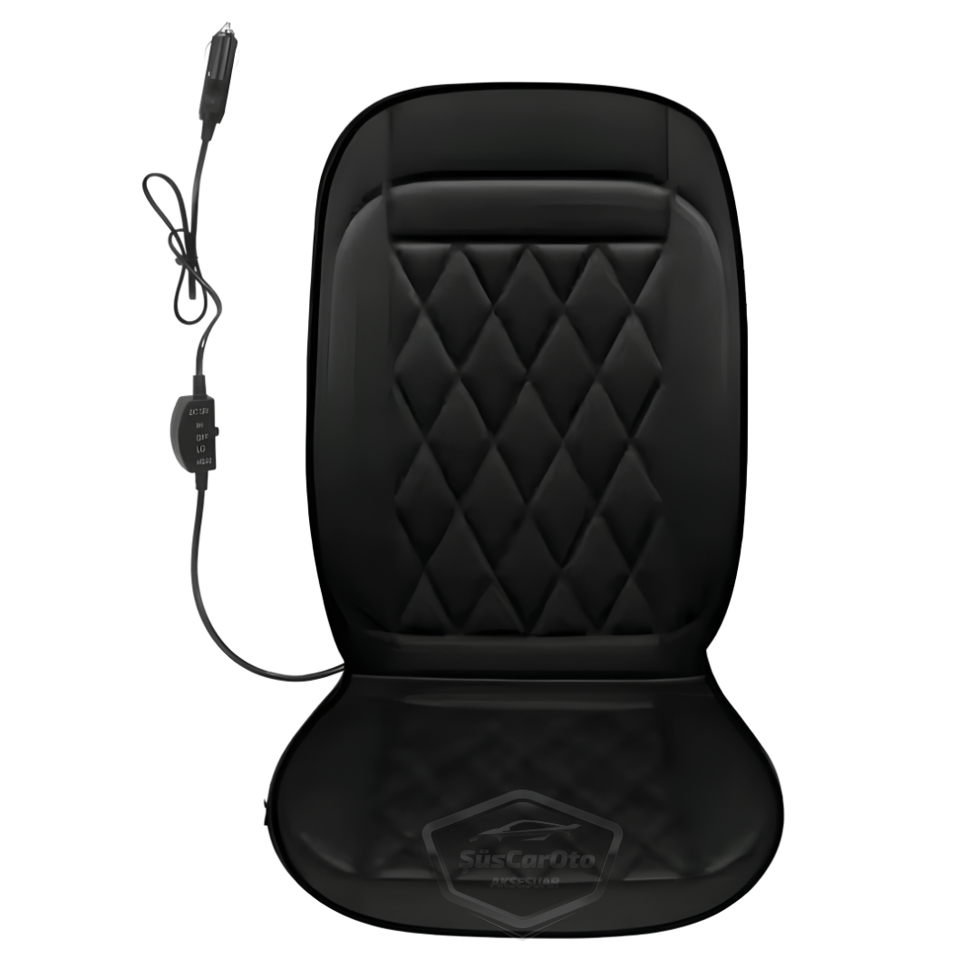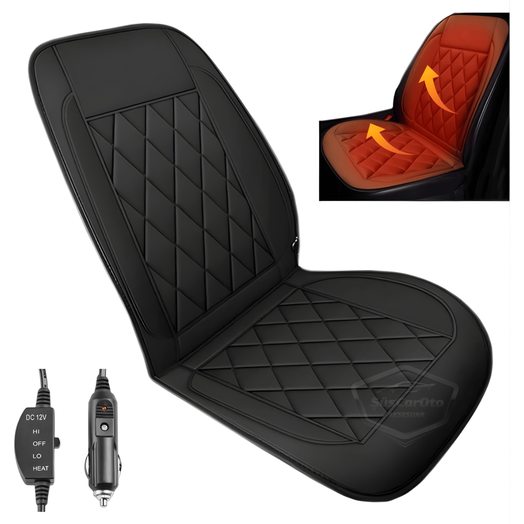 Araç İçi Koltuk Isıtıcısı Oto Isıtmalı Koltuk Minderi Çakmaklık Girişli Isı Ayarlı Tak Çalıştır Siyah 12V 1 Adet