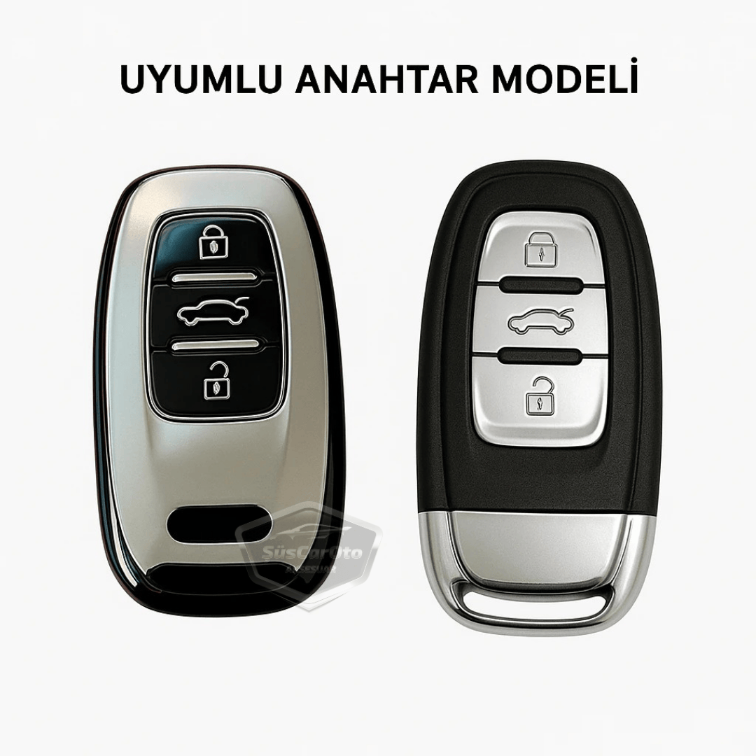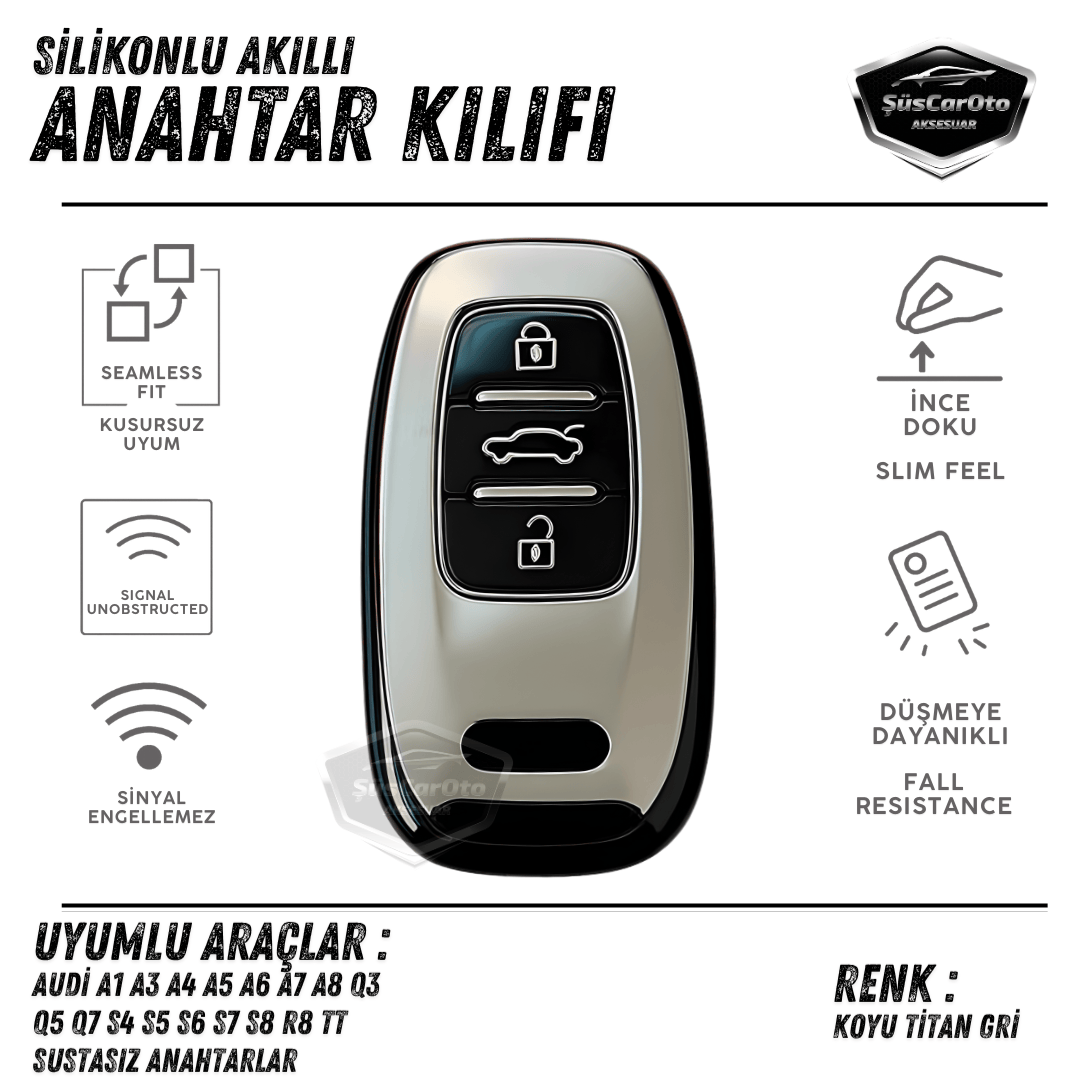 Audi A1 A3 A4 A5 A6 A7 A8 Q3 Q5 Q7 S4 S5 S6 S7 S8 R8 TT Quattro Uyumlu Silikon Anahtar Kılıfı Oto Anahtar Kabı Darbe Emici Anahtarlık Koyu Titan Gri | ŞüsCarOto Aksesuar