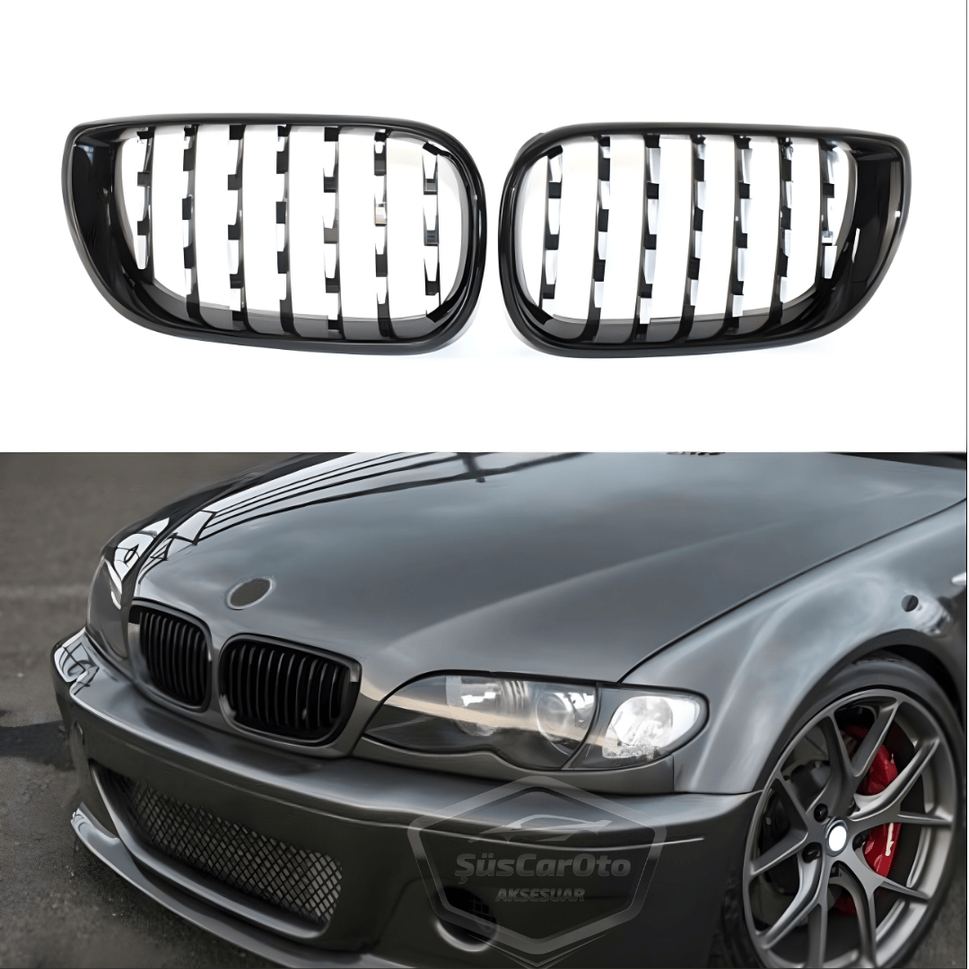 Bmw 3 Serisi E46 LCI 2002-2005 Uyumlu Parlak Siyah Ön Panjur Seti