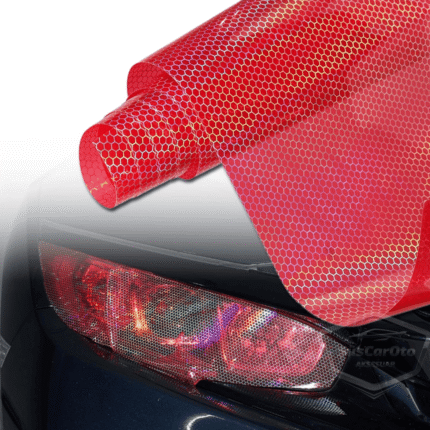 Kırmızı Hologram Petek Desen Far Stop Filmi Far Folyosu Far Çizik Çizilme Engelleyici Folyo 100 x 30 cm