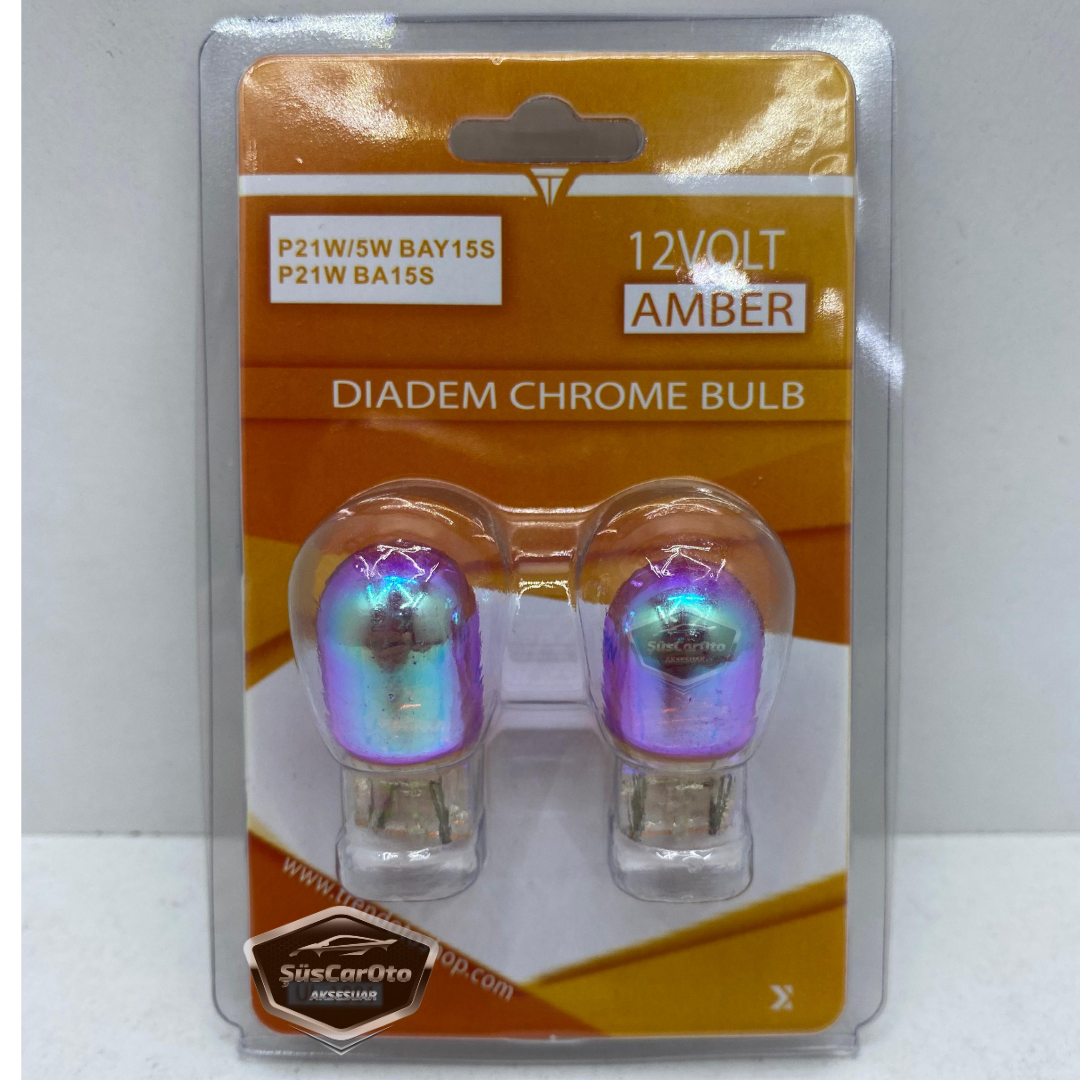 Diadem Ampul Krom Amber Park Sinyal Ampulü Gündüz Farı T20 WY21/5W 12V Turuncu Işık Colormatik 2'li Takım