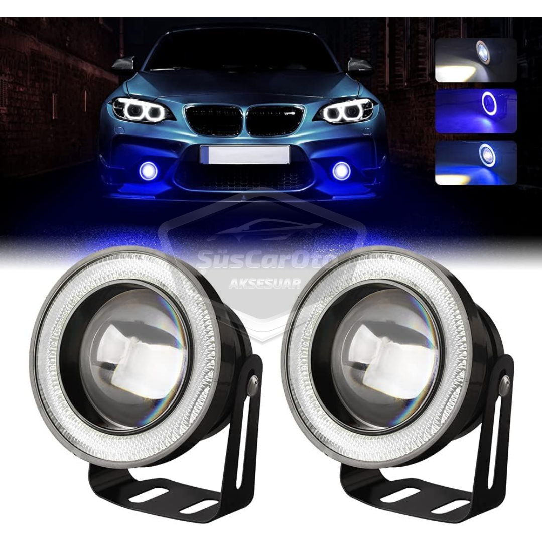 Fiat Ducato Uyumlu Üniversal Mercekli Angel Sis Farı Metal Su Geçirmez 76 mm Mavi Halkalı Gündüz Farı Angel Eyes 2 Adet | ŞüsCarOto Aksesuar