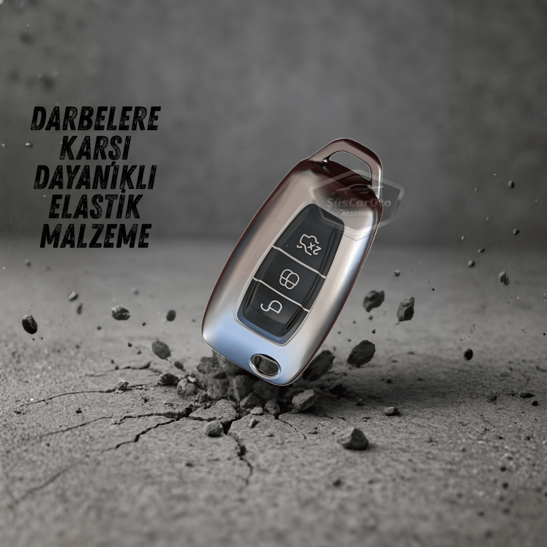 Ford Focus Fiesta Kuga Mondeo Transit Tourneo Ranger Galaxy Cmax Smax Sustalı Anahtar Uyumlu Silikon Anahtar Kılıfı Oto Anahtar Kabı Darbe Emici Anahtarlık Koyu Titan Gri | ŞüsCarOto Aksesuar