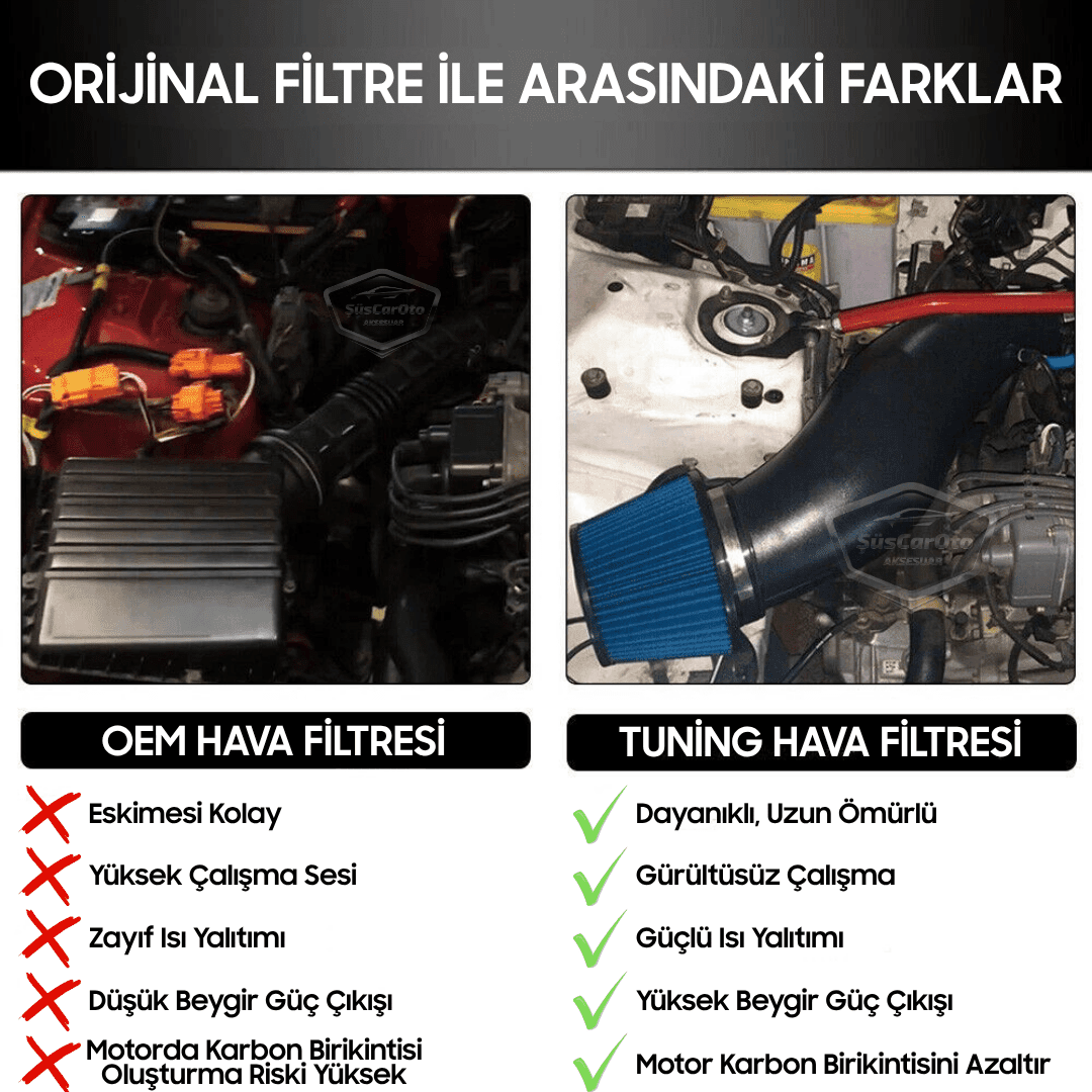 Diğer hava filtresi tertibatlarına göre daha büyük hacimde soğuk hava çeker.