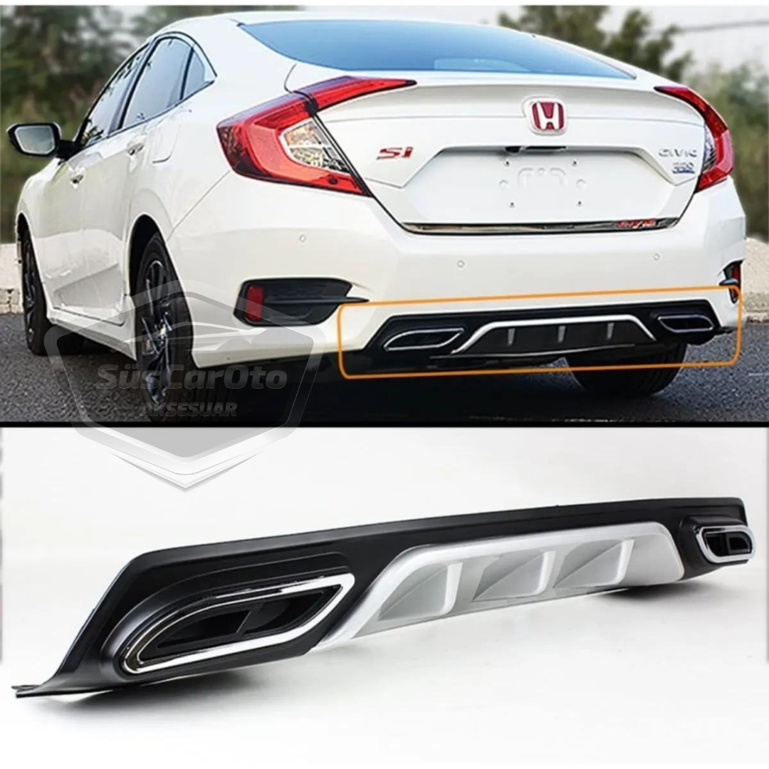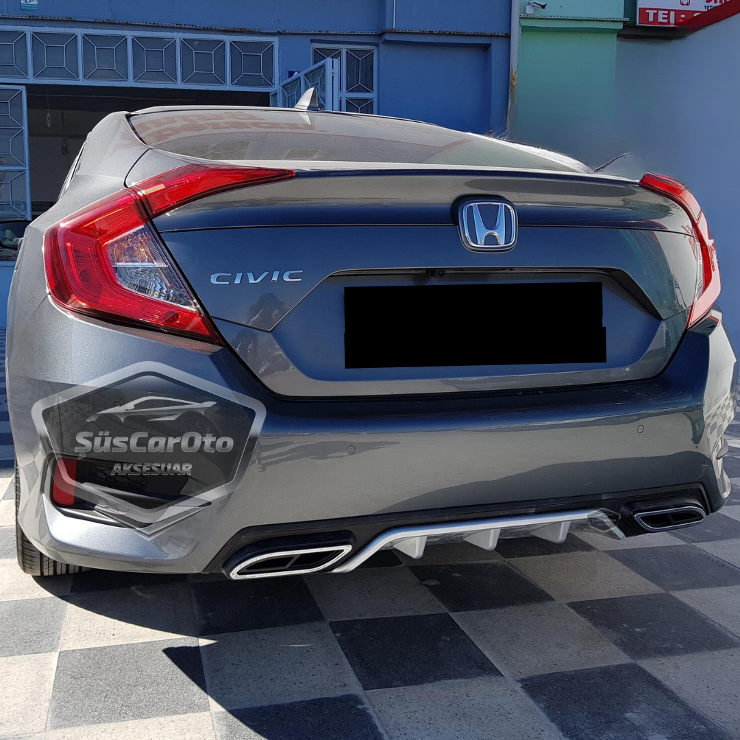Honda Civic FC5 2016-2021 Araca Özel Siyah Gri Arka Difüzör Tırnaklı Çift Kare Egzoz Çıkışlı