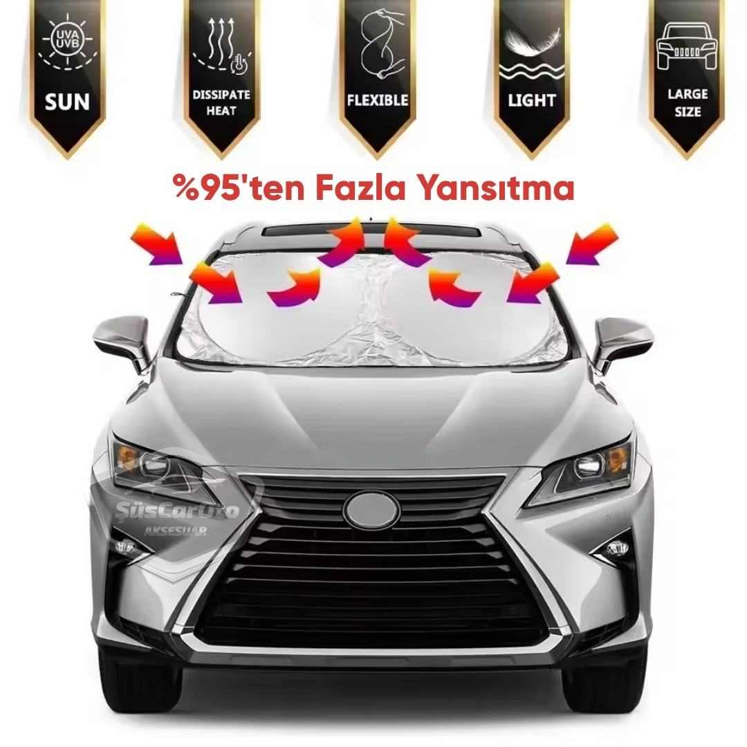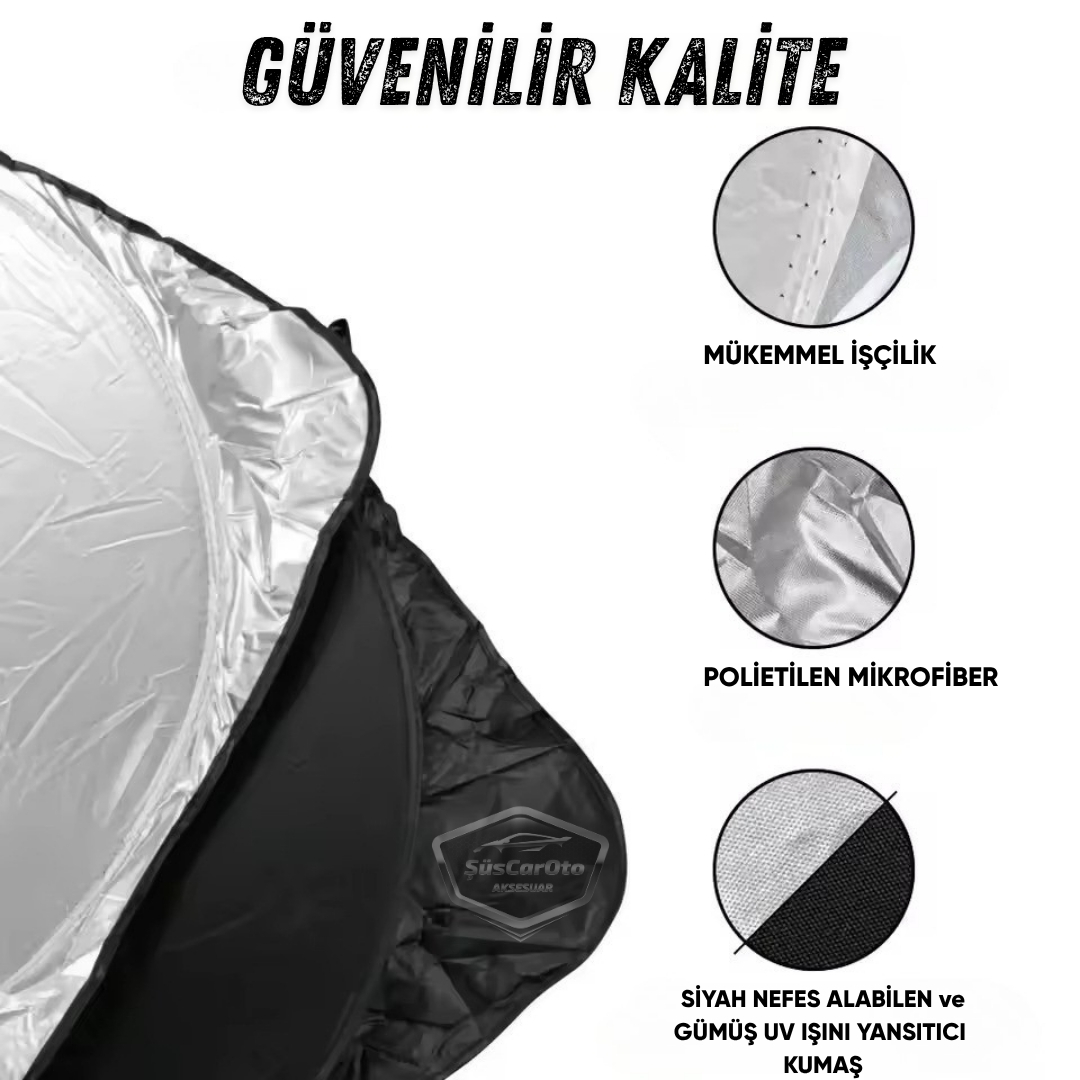 – Yüksek Kalite Malzeme: Çift katmanlı yapısı, UV ışınlarını etkili bir şekilde yansıtarak aracınızın iç mekanını korur.