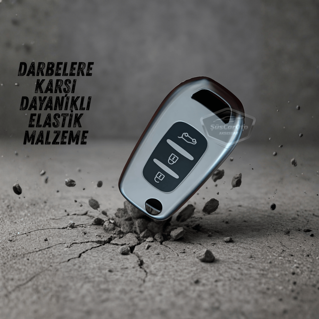 Renault Fluence Megane Clio Kangoo Master Modus Twingo Sustalı Anahtar Uyumlu Silikon Anahtar Kılıfı Oto Anahtar Kabı Darbe Emici Anahtarlık Koyu Titan Gri