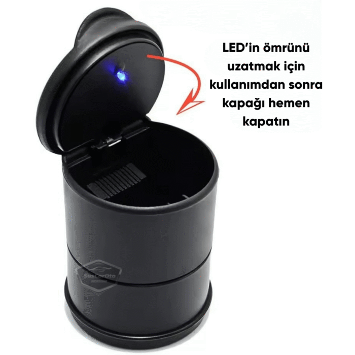 Üniversal Mavi Led Işıklı Spor Oto Küllük Kapaklı Bardaklıklı Araç İçi Küllük Araba Küllüğü Siyah | ŞüsCarOto Aksesuar